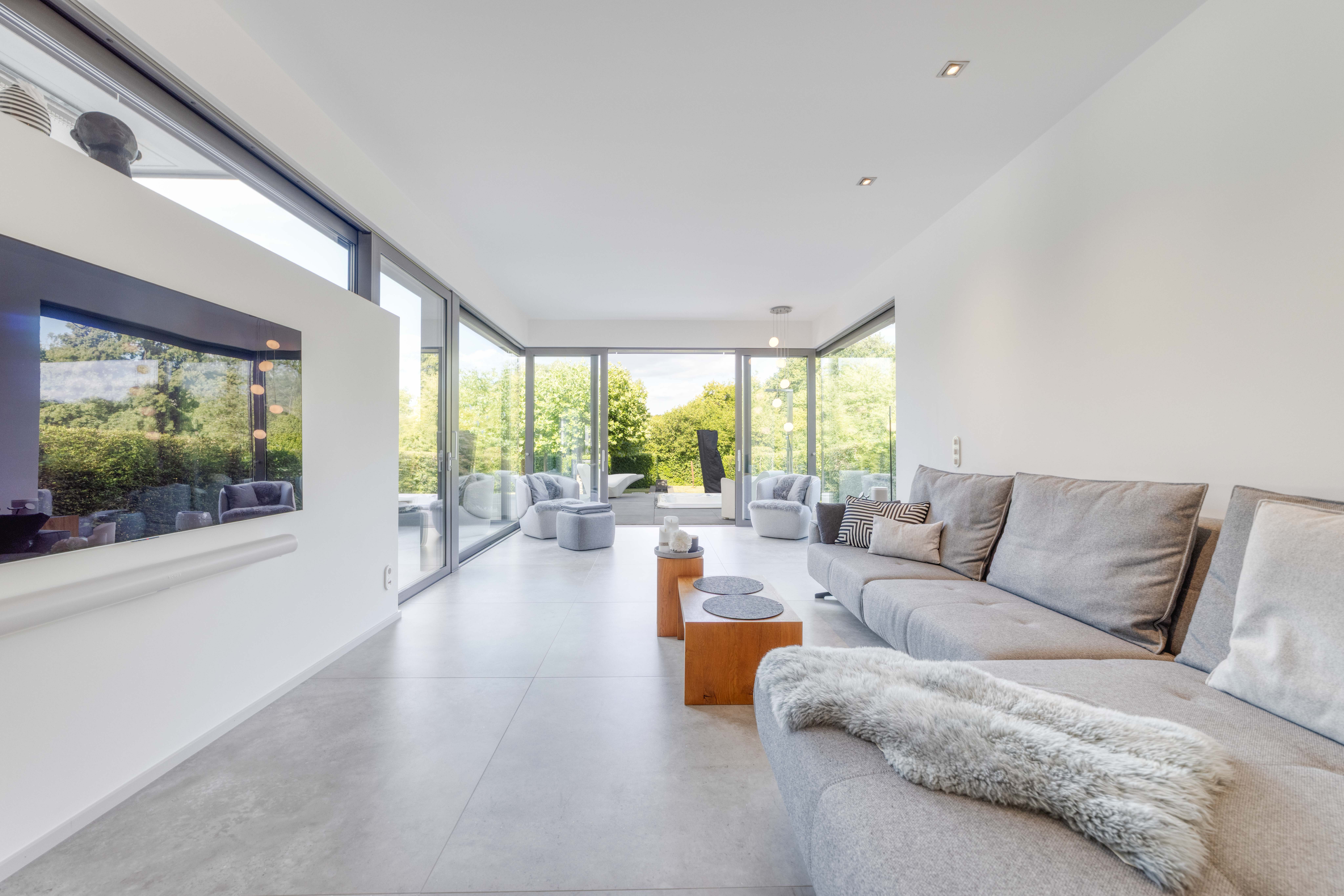 Ein in den Boden eingelassener Weinkeller im Wohnbereich (mit Zugang zum Hobbyraum im Untergeschoss), das Saunahaus, der Whirlpool und der herrlich angelegte Garten (ca. 450 m²) sind nur ein kleiner Ausschnitt der vielen Highlights dieser atemberaubenden Immobilie.