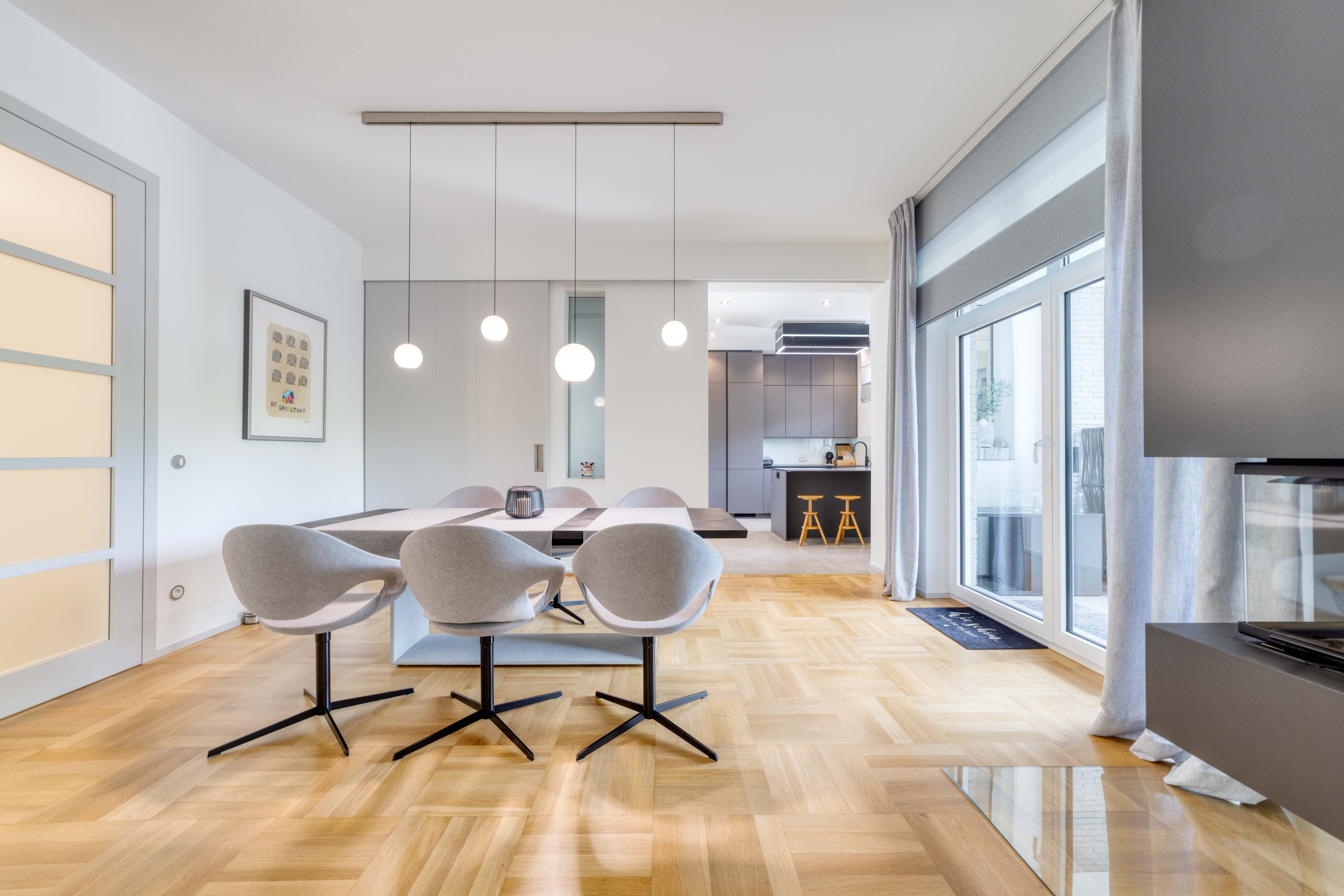 Mittelpunkt der Wohnung ist der äußerst großzügige Wohn- und Essbereich mit angrenzender Küche (neuwertige Einbauküche ist im Kaufpreis enthalten) und direkten Zugang zur großzügigen Terrasse.