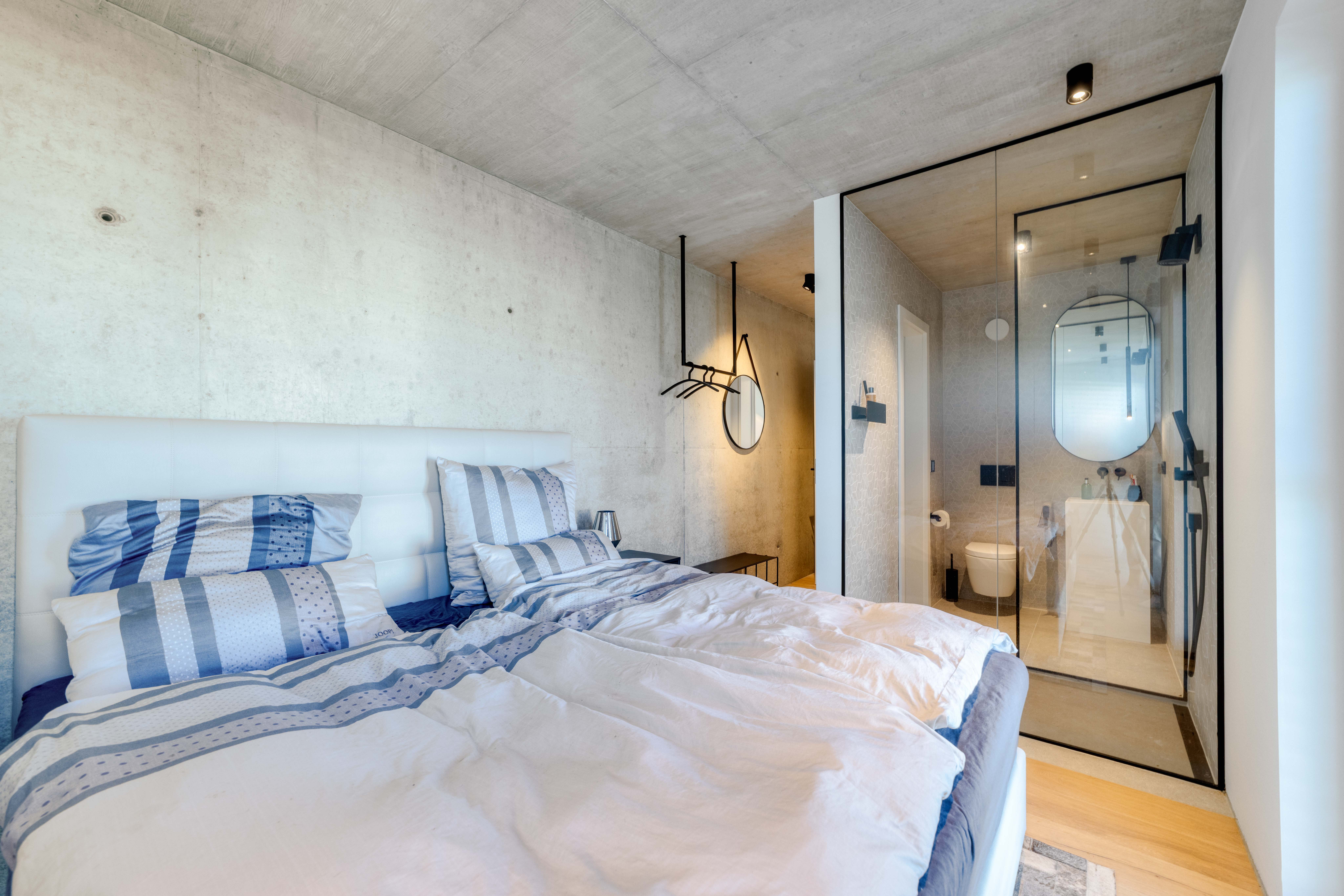 Das Obergeschoss lässt ebenfalls keine Wünsche offen. Neben dem Elternschlafzimmer mit Ankleide und großen Familienbad mit Sauna verfügt diese Etage über ein weiteres Schlafzimmer mit integrierten Bad. Die von dieser Ebene begehbare Dachterrasse mit Whirlpool und herrlichem Ausblick lädt zum Verweilen ein.