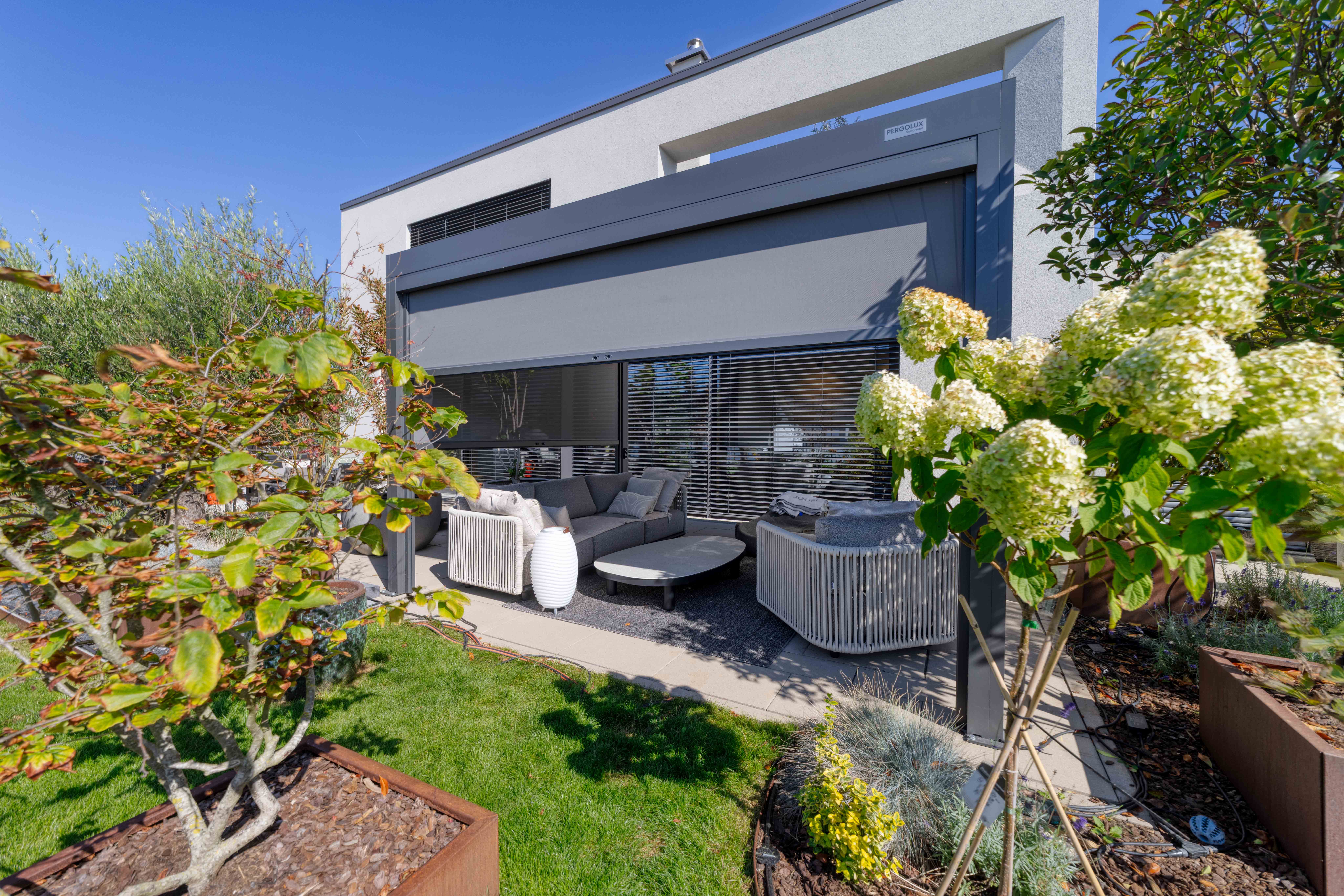 Der herrlich angelegte Garten mit hochwertiger Pergola lässt die Sommermonate zum einzigartigen Urlaubserlebnis werden und das in Ihrem eigenen Zuhause.