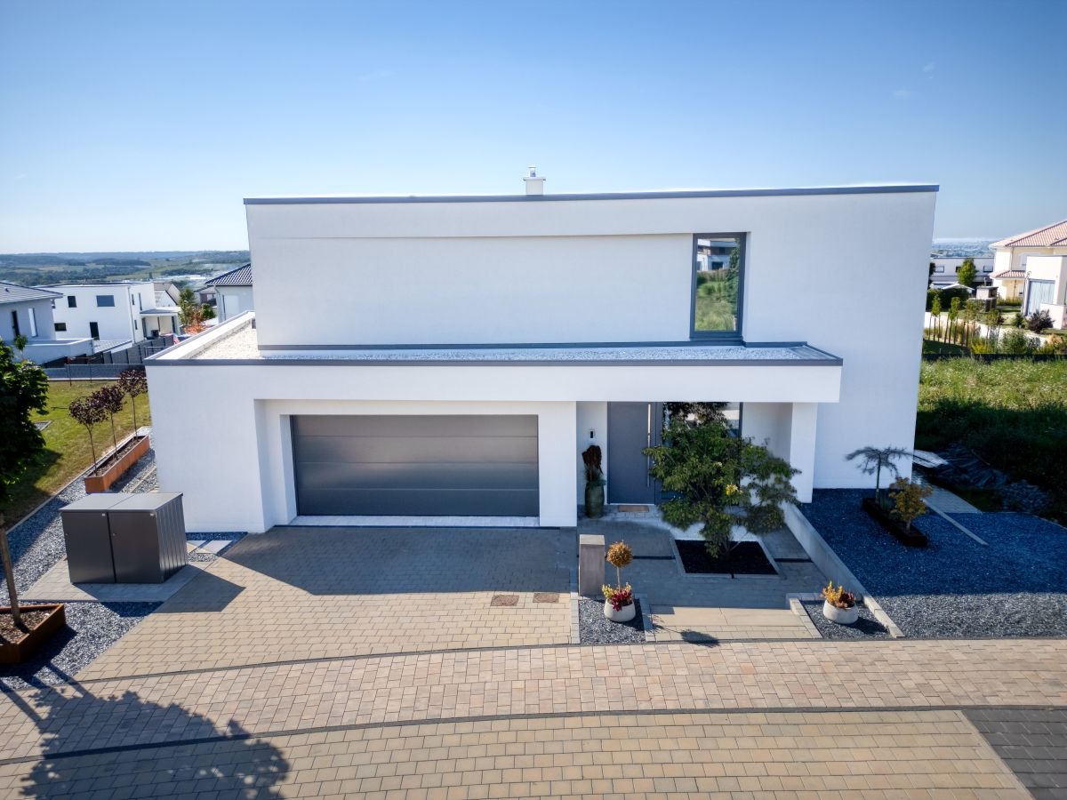 Dieses lichtdurchflutete und energieeffiziente Einfamilienhaus überzeugt mit einer äußerst hochwertigen Ausstattung, vielen Gadgets und Sonderanfertigungen. Es hat eine Wohnfläche von ca. 210 m² und befindet sich ruhig gelegen, auf einem ca. 750 m² großen Grundstück in Wincheringen (Auf Mont), in unmittelbarer Grenznähe zu Luxemburg.