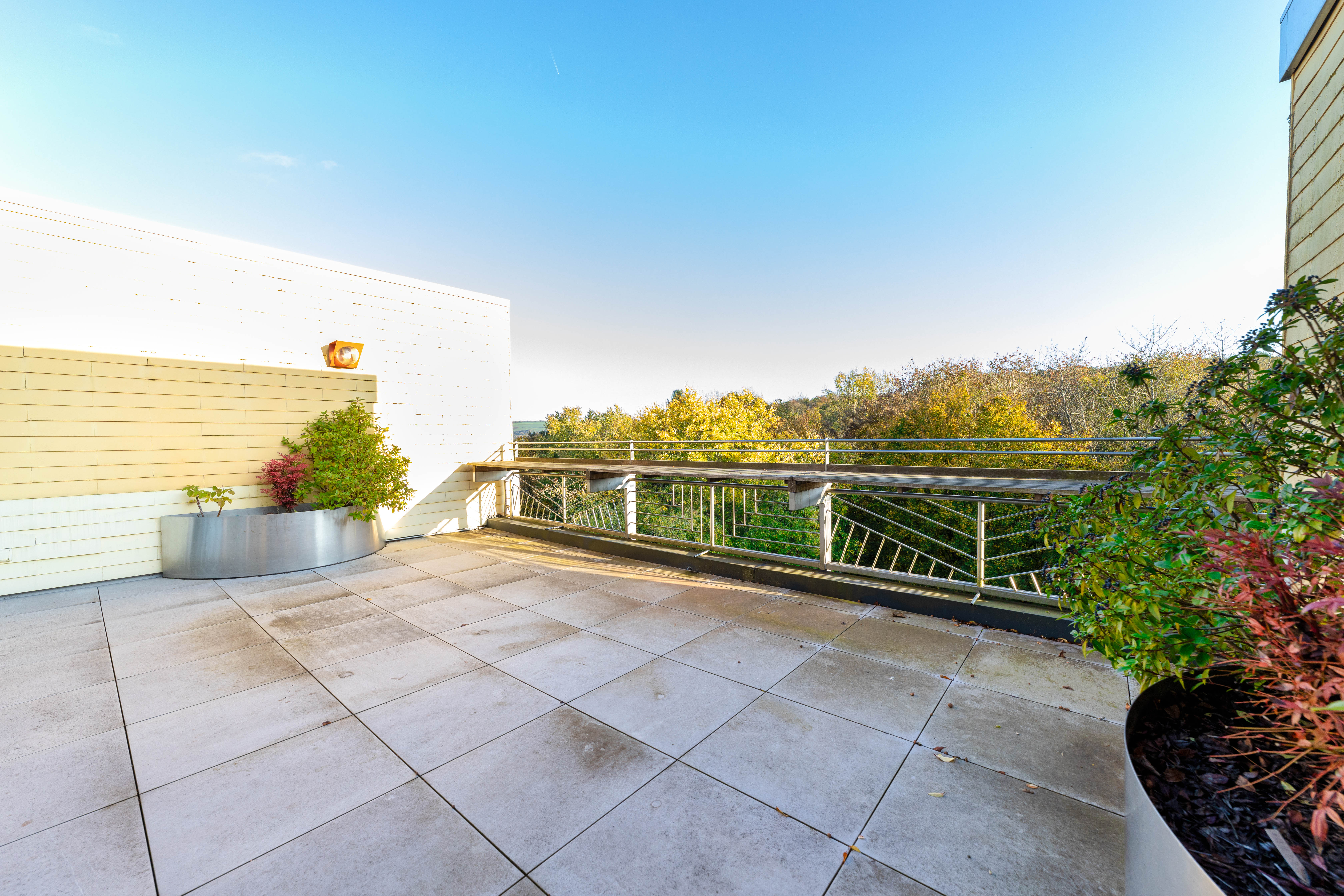 Der große Wintergarten und die zusätzliche Dachterrasse verfügen über einen atemberaubenden Weitblick, der begeistern wird.